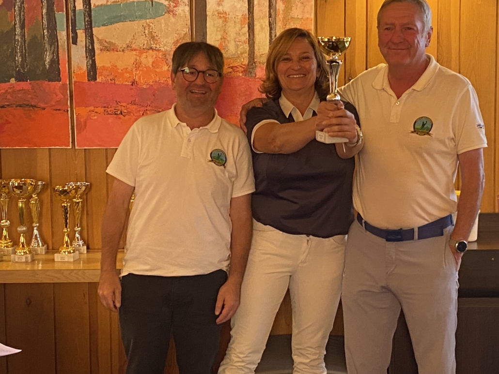 Le Comité Départemental de Golf organise deux compétitions majeures sur le territoire altiligérien avec le Critérium de Pitch & Putt dont la finale se déroule exclusivement à Coutanson et le championnat départemental qui se déploie alternativement sur les trois autres golfs de la Haute-Loire. Pour cette année, c’était au tour du Chambon-sur-Lignon d’accueillir cette compétition qui détermine les champions départementaux sur sept catégories dames et messieurs confondues. Alors que les départs en ligne étaient prévus dès potron-minet, un invité surprise qui ne s’était pas inscrit sous le patronyme de Monsieur Brouillard est intervenu pour perturber cette journée. C’était sans compter sur la clairvoyance de Gilles Baix, le directeur du golf, pour parer à cette situation en organisant des départs simultanés des tees 1 et 10 dès que le soleil fut apparu. La compétition était lancée sur un parcours qui avait revêtu ses couleurs automnal du plus bel effet. Les conditions étaient donc réunies pour réaliser les plus beaux coups et scorer du même coup. A l’issue des parties, les joueurs se sont retrouvés sur la terrasse du golf pour partager le verre de l’amitié et refaire la rencontre avec ses exploits et ses déboires. Tout se petit monde a ensuite rejoint le club house pour la remise des trophées où le Président du Comité prendra la parole pour remercier l’ensemble des participants, le golf du Chambon-sur-Lignon pour son accueil, la Table du Golf pour la réalisation du buffet et Gilles Baix pour une parfaite logistique. Ce dernier donnera la liste des champions et vice-champions qui recevront des mains de Renaud Azema les précieux trophées. L’ensemble des participants se sont ensuite retrouvés autour du buffet sponsorisé par le Comité Départemental et réalisé par l’équipe d’Aurélien et Sandrine.