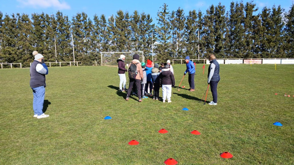Après une journée passée en cité ponote, c’est 320 élèves qui se sont donnés rendez-vous au complexe sportif Pierre Pouille de Bains pour une nouvelle initiation sportive sous l’égide du CDOS et de l’USEP en ce mardi 31 mars 2026. Les premières associations et comités sportifs s’étaient chaudement vêtus dès potron-minet pour installer les diverses activités au regard des températures annoncées et la prévoyance a été de circonstance ! En effet, les températures basses associées au vent du nord s’étaient invités sur le plateau, ce qui n’a pas fait reculer les enfants à participer à cette journée olympique et paralympique. A signaler que Monsieur le Maire et toute son équipe se sont démultipliés pour apporter le meilleur accueil aux invités du jour en mettant à disposition de belles installations sportives. Après les prises de paroles, le lancement du traditionnel défilé des différents pays formés par l’ensemble des écoles pouvaient alors commencer avant une ventilation vers les différents ateliers. Le Comité Départemental de Golf était encore présent pour assurer les animations sous le contrôle de Jacqueline, Brigitte, Patrice et Dominique et ce, tout au long de la journée. Comme à l’accoutumée, ces néo-golfeurs se sont montrés adroits et c’est toujours un plaisir de voir les progrès se former en quelques minutes. Les traditionnelles photos illustraient la joie de ces enfants à s’être initiés au golf et gageons que certains d’entre eux deviendront accros à ce jeu. Dans tous les cas, le golf du Puy-en-Velay sera ravi de voir arriver de nouveaux adeptes de la petite balle blanche. Un grand bravo à l’ensemble des organisateurs, accompagnateurs et initiateurs pour cette belle journée sportive.