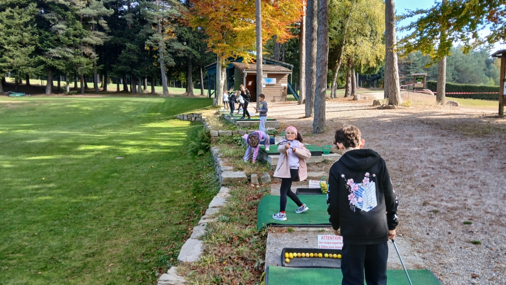 C’était au tour des élèves du troisième cycle de l’école Saint-Joseph de terminer un cycle de golf scolaire commencé début septembre à Saint-Ferreol d’Auroure. Pour en arriver là, les professeurs des écoles de cet établissement sont passés par une initiation golfique qui s’est déroulée fin août sous la direction de Dominique. Ce bon moment s’est voulu convivial tout en préparant activement les séances prévues à la rentrée de septembre. Le Comité Départemental, comme à l’accoutumée, s’est déplacé pour lancer l’activité avec une séance théorique suivi de la pratique in situ. Un livret pédagogique a aussi été distribué à l’ensemble de ces futurs golfeurs pour permettre de découvrir un sport jamais pratiqué. L’apprentissage de ces écoliers a permis de découvrir les règles de sécurité et surtout les premiers gestes du golf avec des exercices très ludiques. Les progrès ne se sont pas fait attendre et une dizaine de séances plus tard, la fin de ce cycle était prévu sur le golf du Chambon-sur-Lignon en ce jeudi 16 octobre. La descente de l’autocar effectuée, il était temps de participer à la Ryder Cup et les ateliers proposées par Didier, Patrice et Dominique. Pendant qu’ américains et européens d’un jour participaient à la compétition reine du golf sur le Pitch & Putt et les trous n° 16, 17 et 18 du parcours, approches, tirs de loin et putting étaient au programme des ateliers. Un pique plus tard, nos golfeurs en herbe reprenaient les activités avec de belles performances enregistrées çà et là comme trois trous en un réalisés sur l’atelier approche. Cette journée est arrivé à son terme avec la proclamation des résultats de la Ryder Cup avec la victoire des européens sur les américains (487 vs 504) et la remise des diplômes avec l’obtention du « Drapeau vert ». Une belle journée de golf qui clôture ainsi une fin de cycle scolaire pour les élèves de Saint-Ferreol d’Auroure.