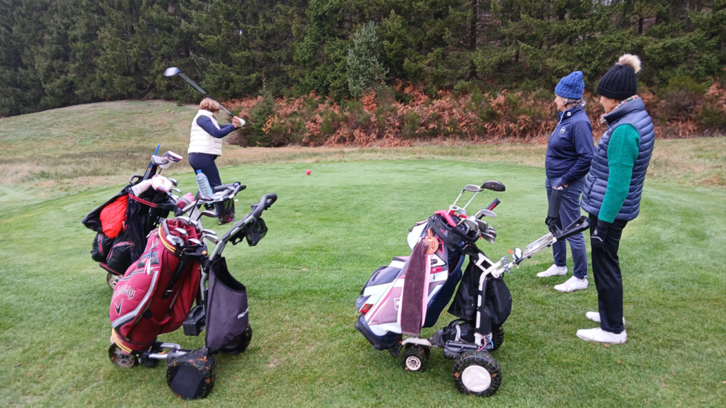 Ce samedi 8 novembre correspondait au retour des « Hivernales » avec un premier tour sur le golf du Chambon-sur-Lignon. Brigitte Olagnol, référente féminine au sein du Comité Départemental, orchestre une nouvelle fois ces rencontres amicales 2025/2026 réservées exclusivement à la gente féminine. Jusqu’alors, cette compétition regroupait l’ensemble des joueuses des clubs de la Haute-Loire et c’est avec grand plaisir que le golf de Saint-Etienne vient de se joindre à ces rencontres. Après un petit café accompagné de pâtisseries concoctées par les joueuses locales, Brigitte a pris la parole pour annoncer la composition des équipes avec un scramble comme formule de jeu. La traditionnelle photo de groupe s’est tenue sur le green du 18 avant que l’ensemble des joueuses se déplacent sur leurs tees respectifs pour un départ en shot gun. Le Président du Comité a profité de l’occasion pour se rendre auprès de chaque équipe pour proposer un peu de thé et quelques sucreries. Cette belle journée s’est terminée autour du verre de l’amitié avant de se retrouver pour partager un repas concocté par la Table du Golf.