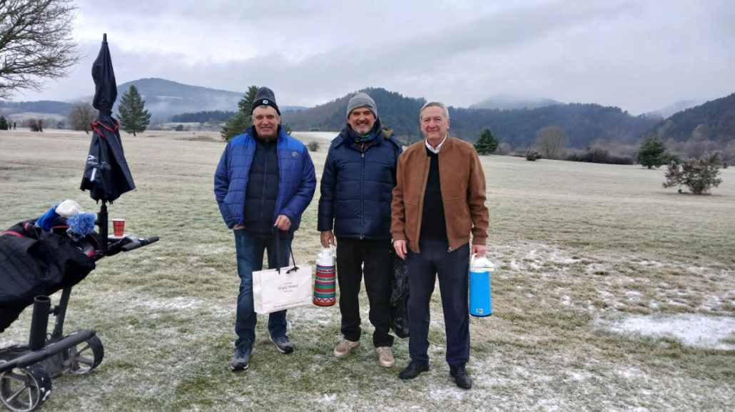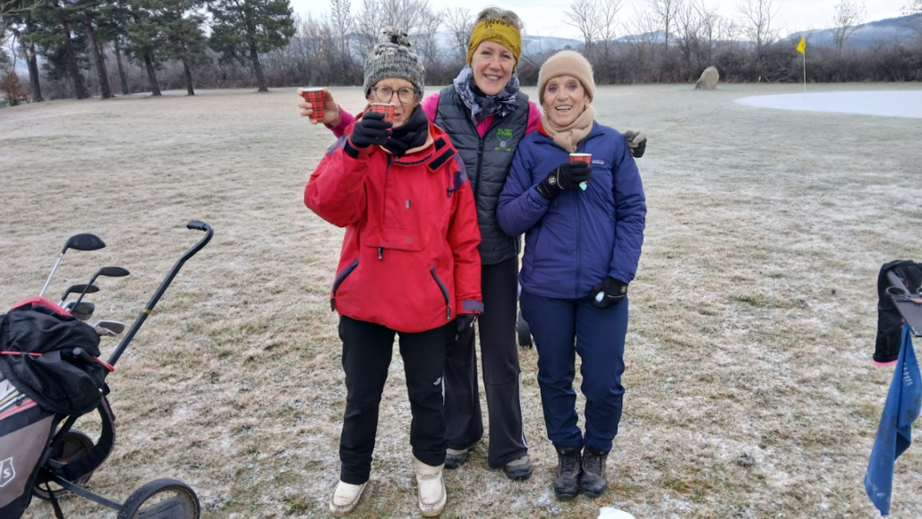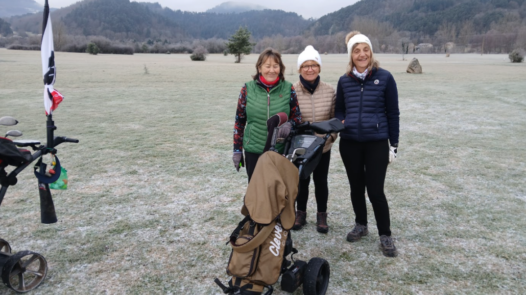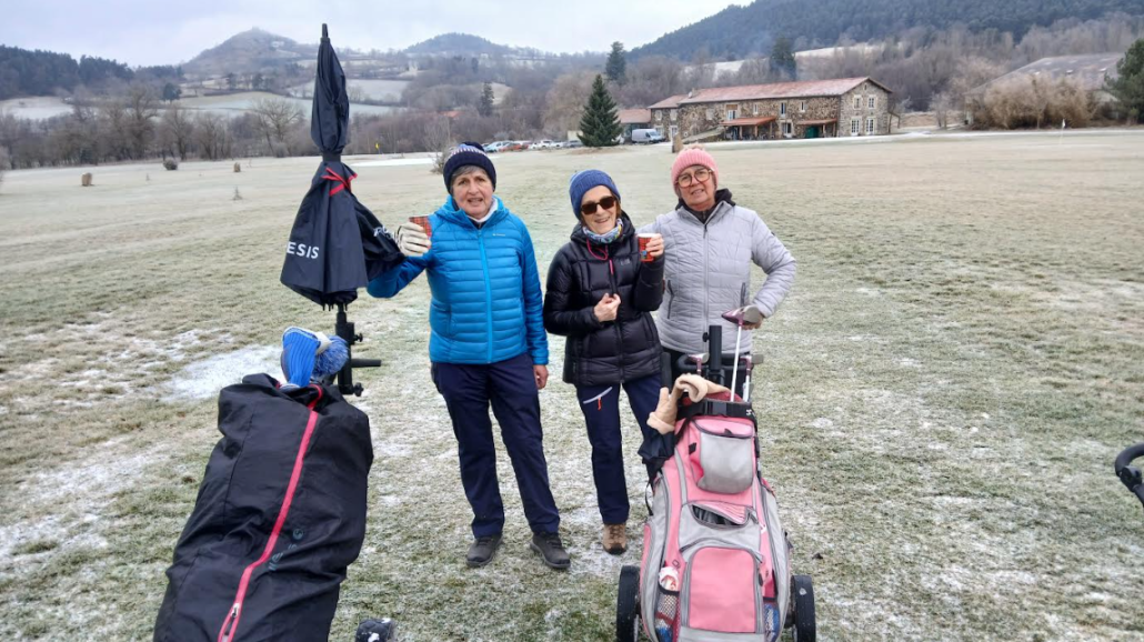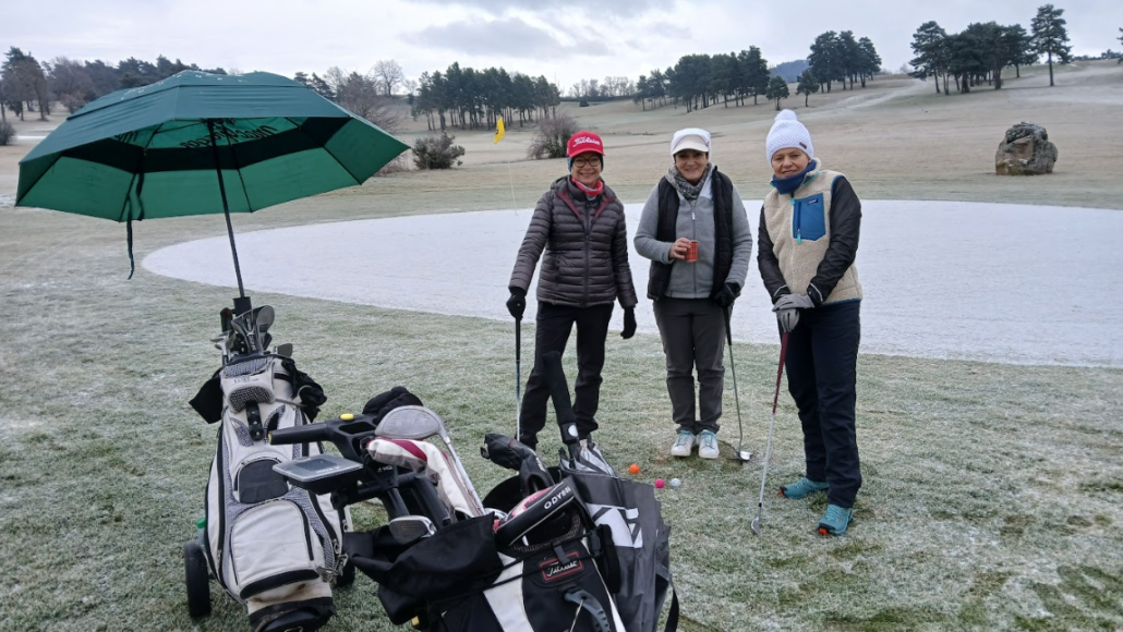 Après deux reports sur les dates prévues sur le calendrier des « Hivernales », un rendez-vous était programmé par Brigitte Olagnol ce samedi 24 janvier sur le Golf des Moutons. Le spectacle qui s’est offert à toutes les joueuses était de toute beauté en ce début de matinée mais il était accompagné d’une température négative qui n’a pas fait reculer ces dames. A ce stade de la journée, il faut absolument souligner le comportement exemplaire de nos féminines qui, à aucun moment, ne se sont plaint des conditions météorologiques avec au contraire le désir de jouer entre copines. Les pâtisseries concoctées par les joueuses locales et le café matinale étaient là pour apporter un petit réconfort salutaire avant de se lancer sur le parcours. Pendant ce temps, l’équipe de l’association sportive du golf s’est activée à préparer le repas pour les uns et le portage de thé et café pour apporter un peu de réconfort auprès de ces dames pour les autres. A l’issue de la partie, tout ce petit monde s’est retrouvé autour d’un verre pour partager ce bon moment passé dans une ambiance conviviale tout en avouant que ce froid, dépourvu de vent, n’avait pas été de nature à faire marche arrière pour ce nouvel épisode des « Hivernales ». Inutile de dire que les saucisses lentilles et la tarte aux pommes servies par l’équipe du golf a été unanimement apprécié. Brigitte Olagnol conclura cette journée en donnant les résultats obtenus par toutes les équipes sans oublier de remercier les participantes et toute l’équipe du Président Philippe Icart qui s’est dépensée sans compter pour apporter le meilleur aux participantes. En conclusion, quelle belle leçon d’humilité donnée par l’ensemble de ces dames qui ont fait fit des conditions climatiques pour se retrouver entre filles ! Bravo Mesdames !